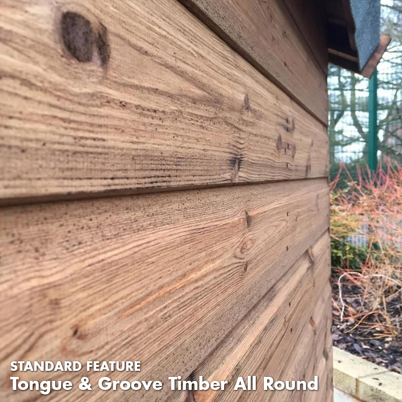 • Premium Materials: Constructed with strong tongue & groove timber throughout, including the floor and roof, ensuring a sturdy structure.