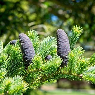 Veitch's fir is an evergreen conifer with a narrow pyramidal habit with horizontal branching, that can grow to mature heights of 25 – 30 m. The bark is smoo