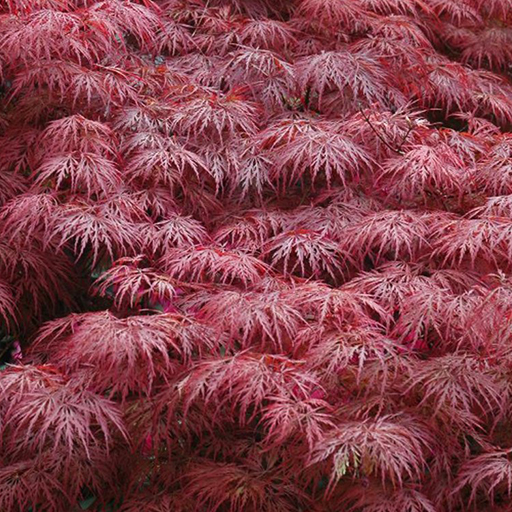 This Acer  dissectum 'Garnet' is a pretty small tree that has feathery, heavily dissected foliage that resembles the colour of a garnet stone throughout the