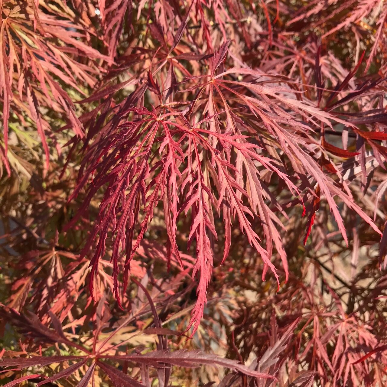 Acer 'Crimson Queen' is a weeping form of Japanese Maple, with lacy, dissected foliage. Foliage emerges a deep red-purple in the spring, and continues to ho