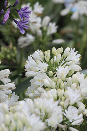 Agapanthus Africanus ‘Double Diamond’ was developed in South Africa and suits our climate.  Its a smaller variety and grows about 20 cm tall (including flow