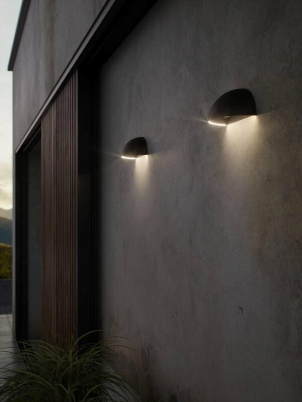 Arcus is a beautiful timeless outdoor lamp with the latest LED and IoT technology. The wall lamp has integrated LED and two light functions, consisting of i