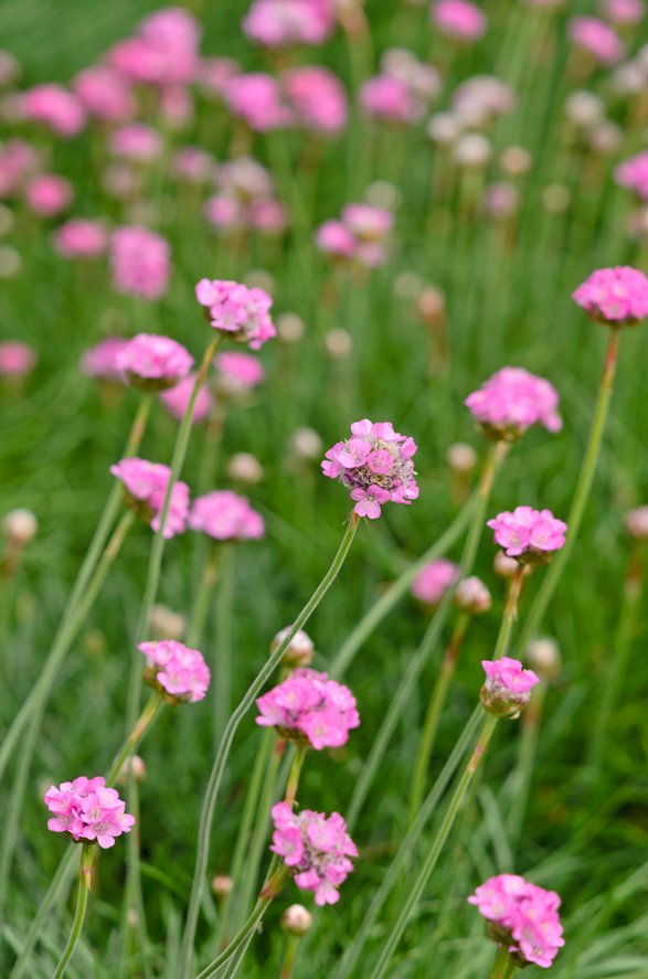 Armeria maritima Splendens is commonly called thrift or sea pink, it’s a compact, low-growing plant which forms a dense, mounded tuft of stiff, linear, grass-like, dark green leaves. ‘Splendens’ is noted for its grass-like foliage and globular, reddish-pink flowers. Tiny reddish-pink flowers bloom in mid-spring.