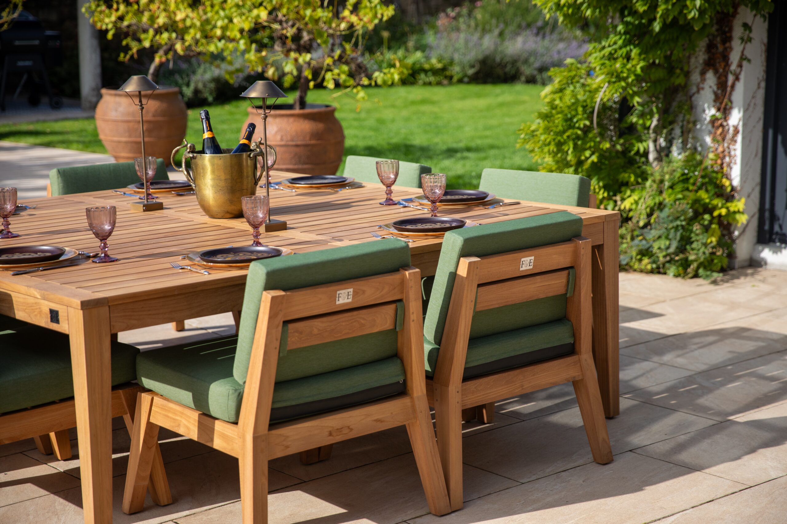 A garden dining table where you can both eat and lounge. Bali was meticulously designed with both dining and lounging experiences in mind, featuring a set o