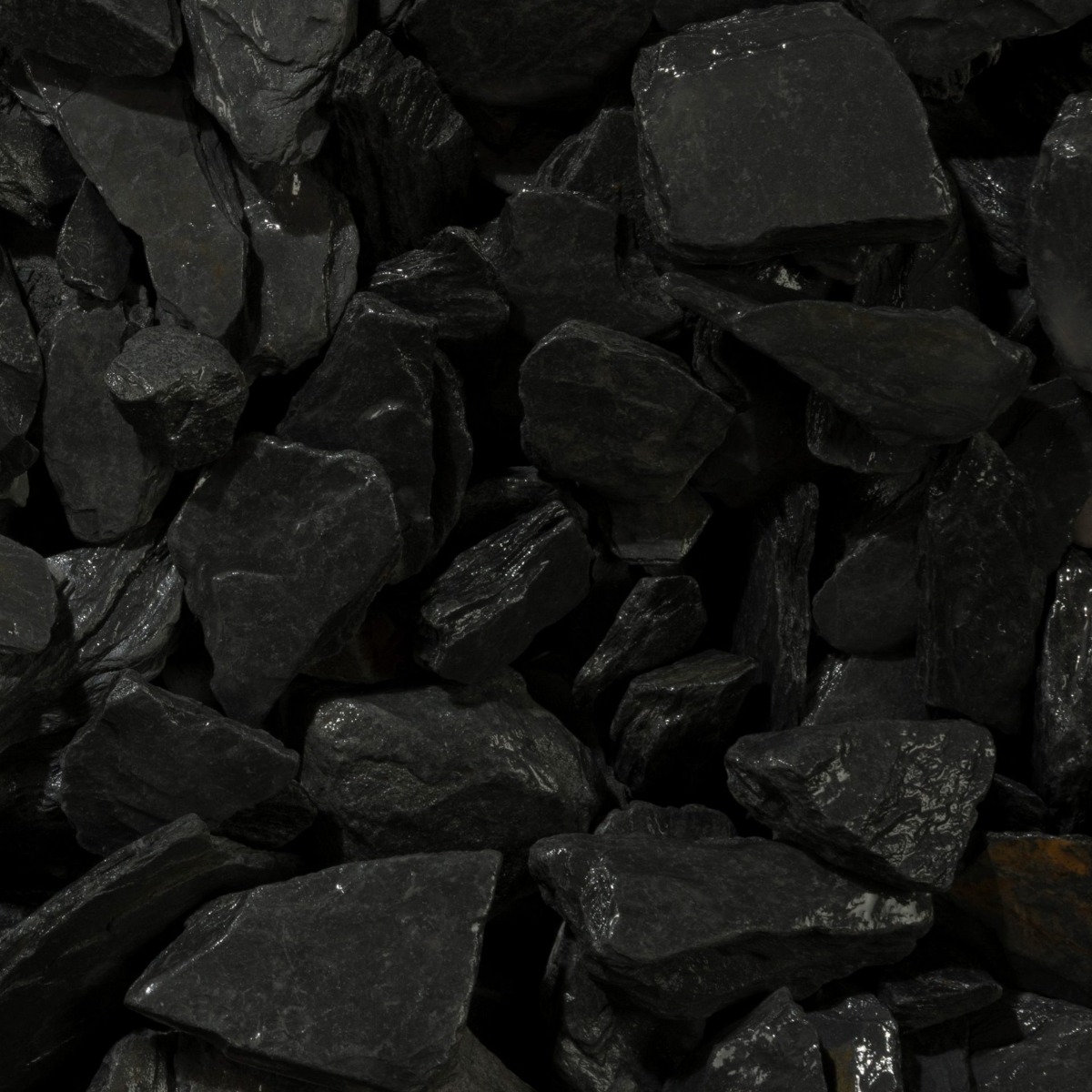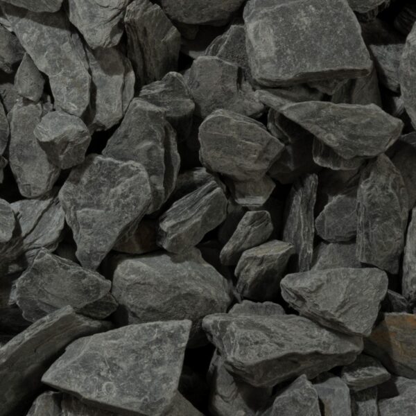 40mm Black Slate is a dark grey/ black recycled chipping that works well in contemporary garden projects.