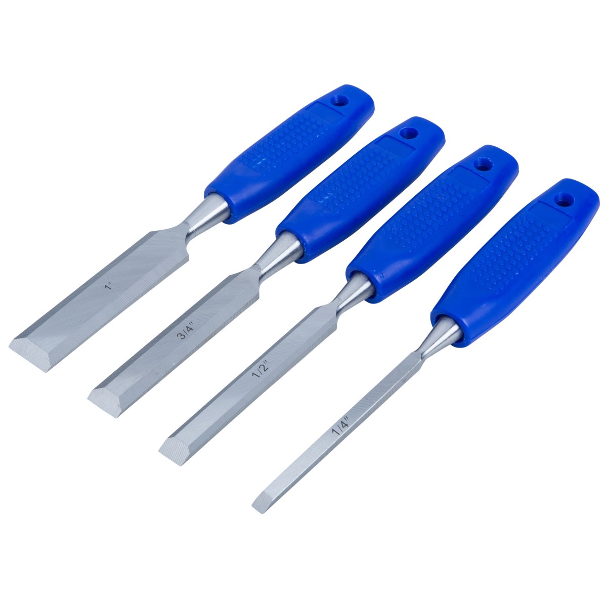 The Blue Spot – 4pc Wood Chisel Set is manufactured from hardened steel for increased durability. Features ergonomic plastic handles for increased comfort.