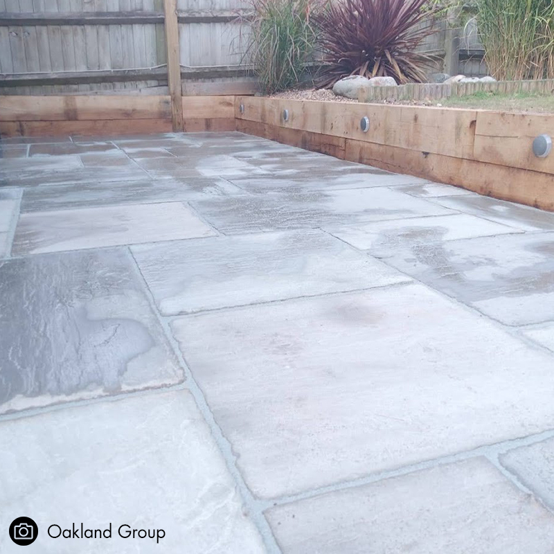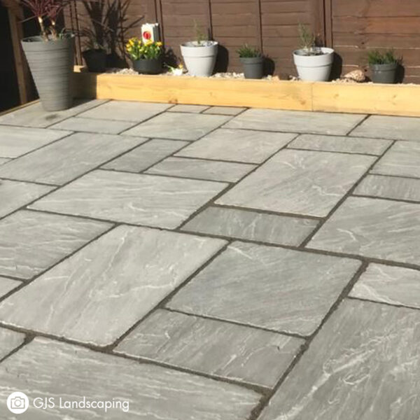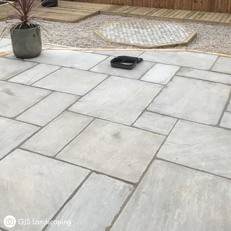 Laying natural stone paving requires compacted MOT to create a firm base and a mix of Concreting sand and Cement to create a full mortar bed to lay the paving on to. It is then also advised to apply a slurry primer to provide a secure bond between your paving slabs and the bedding mortar. Finally you will need a Jointing compound to fill the gaps between each piece and secure the slabs together, providing a professional finish.