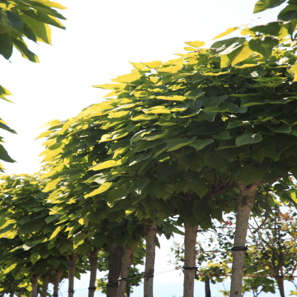 Catalpa bignonioides is a stunning medium sized deciduous tree with a glorious habit that forms naturally into a ball shaped head. This tree is late into le