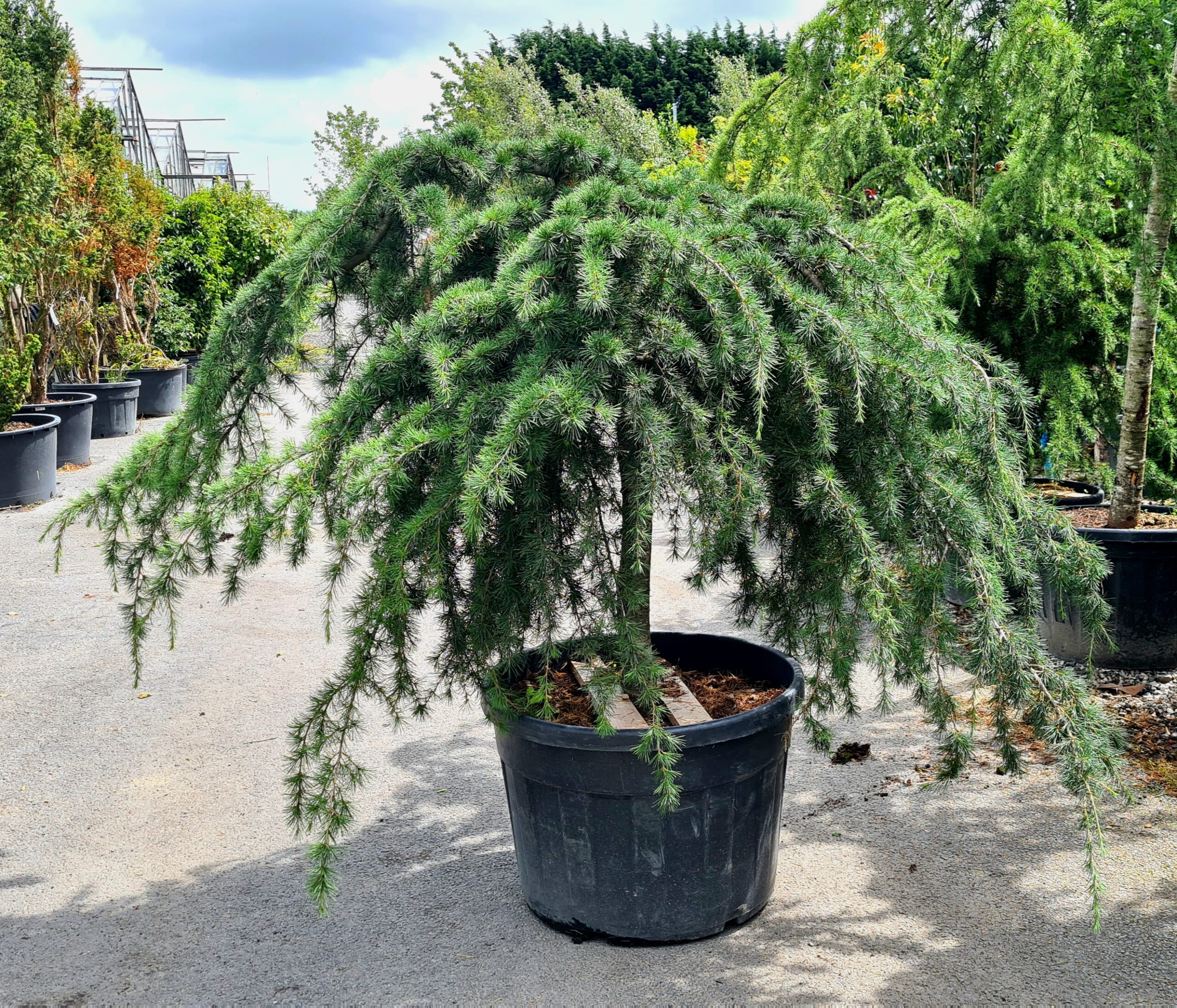 This mature weeping Cedrus deodara Pendula has been grown in a compact 1/2 standard form, with a stem height of approx 90cm and a nice mature head measuring