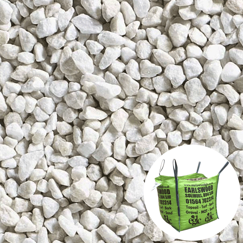 8-12mm White Dolomite Spar part of the Premium range is a stunning decorative aggregate consisting of beautiful white shaded chips are bright in the sunshine and sparkling in the rain.