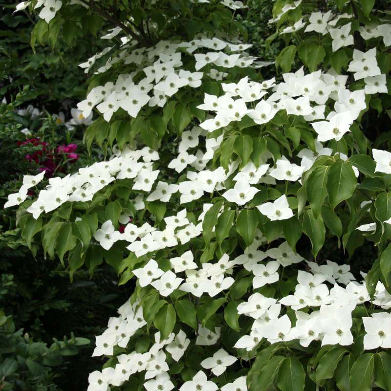 Cornus kousa Chinensis, or Chinese Dogwood, is a spectacular small garden tree that produces a profusion of tiny green flowers surrounded by large, showy wh