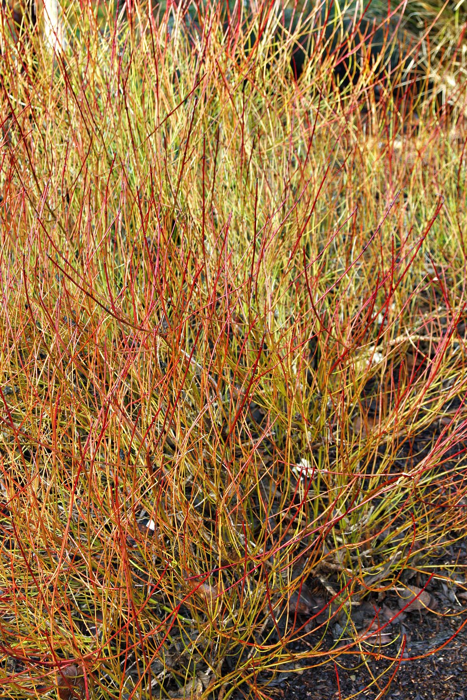 The stems of the Kelseyi dogwood are showy with a mixture of red to yellow throughout the winter turning to green when the leaves emerge. Leaves are rounded