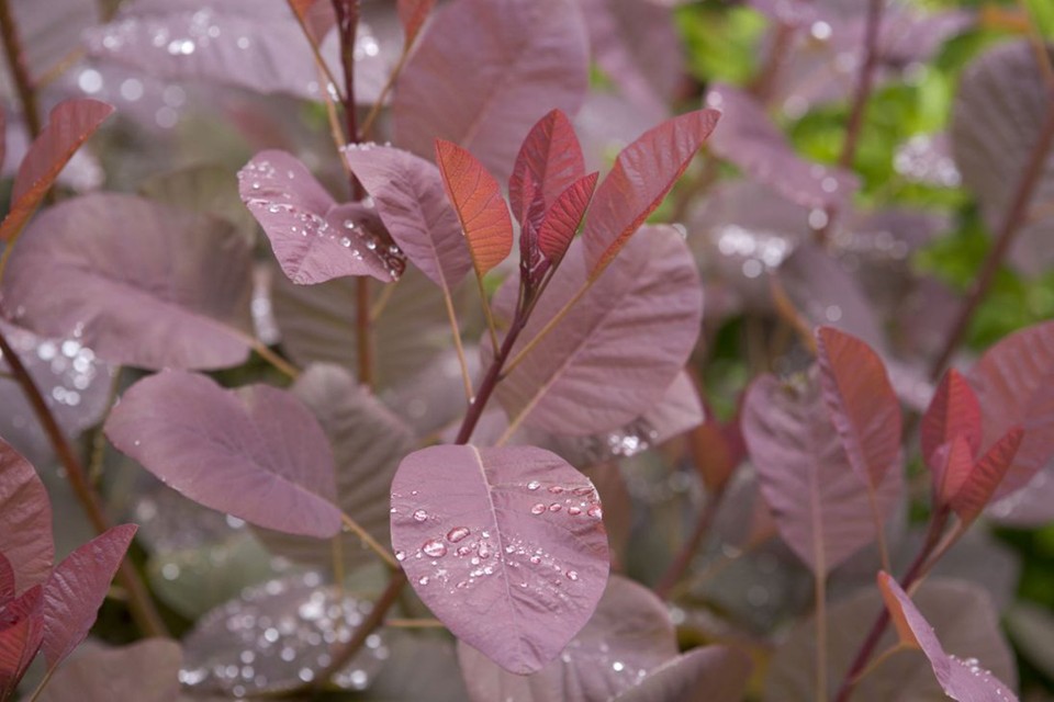 Cotinus ‘Grace’ is a purple-leafed smoke bush, bearing a showy display of pink-purple flowers in summer, followed in September and October by a change of le
