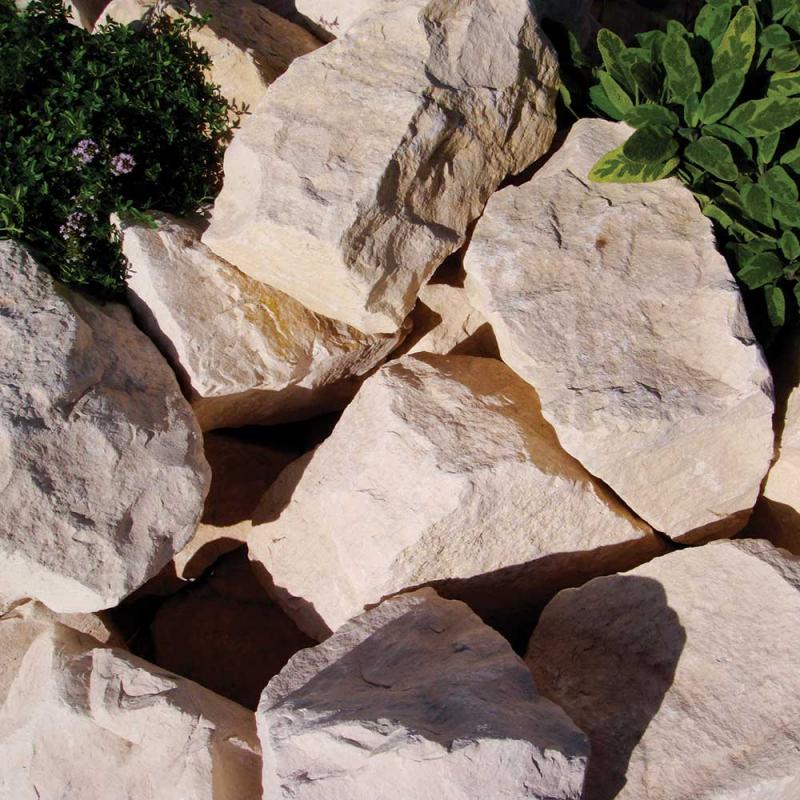Cotswold Rockery. Add interest to your borders with carefully placed pieces of Cotswold Rockery stone, looks particularly good when used with a contrasting aggregate to create an eye catching display. Very good for rockeries and other hard landscaping projects, a very popular stone that will work in any setting.