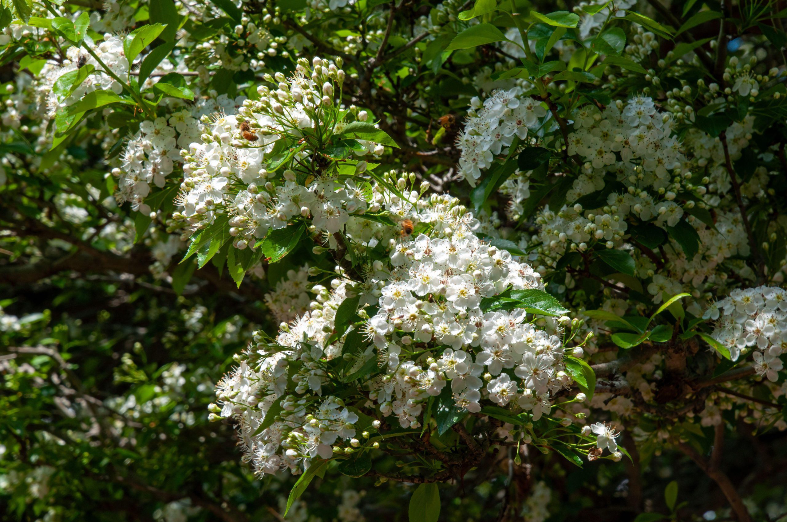 A compact, elegant little tree with thorny branches and shiny ovate leaves. The flowers emerge in mid-summer followed by 2 cm shiny red haws which stay on w