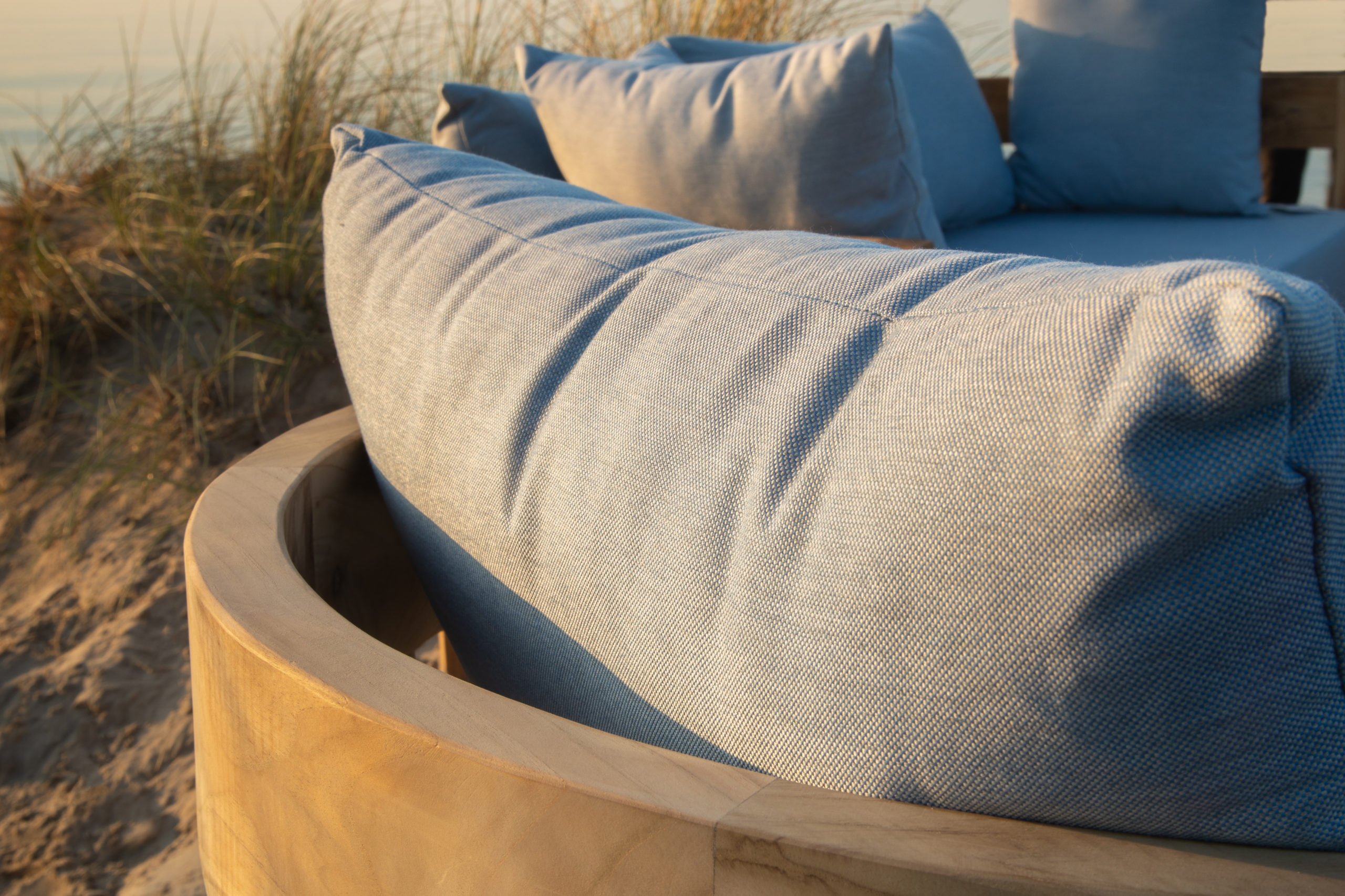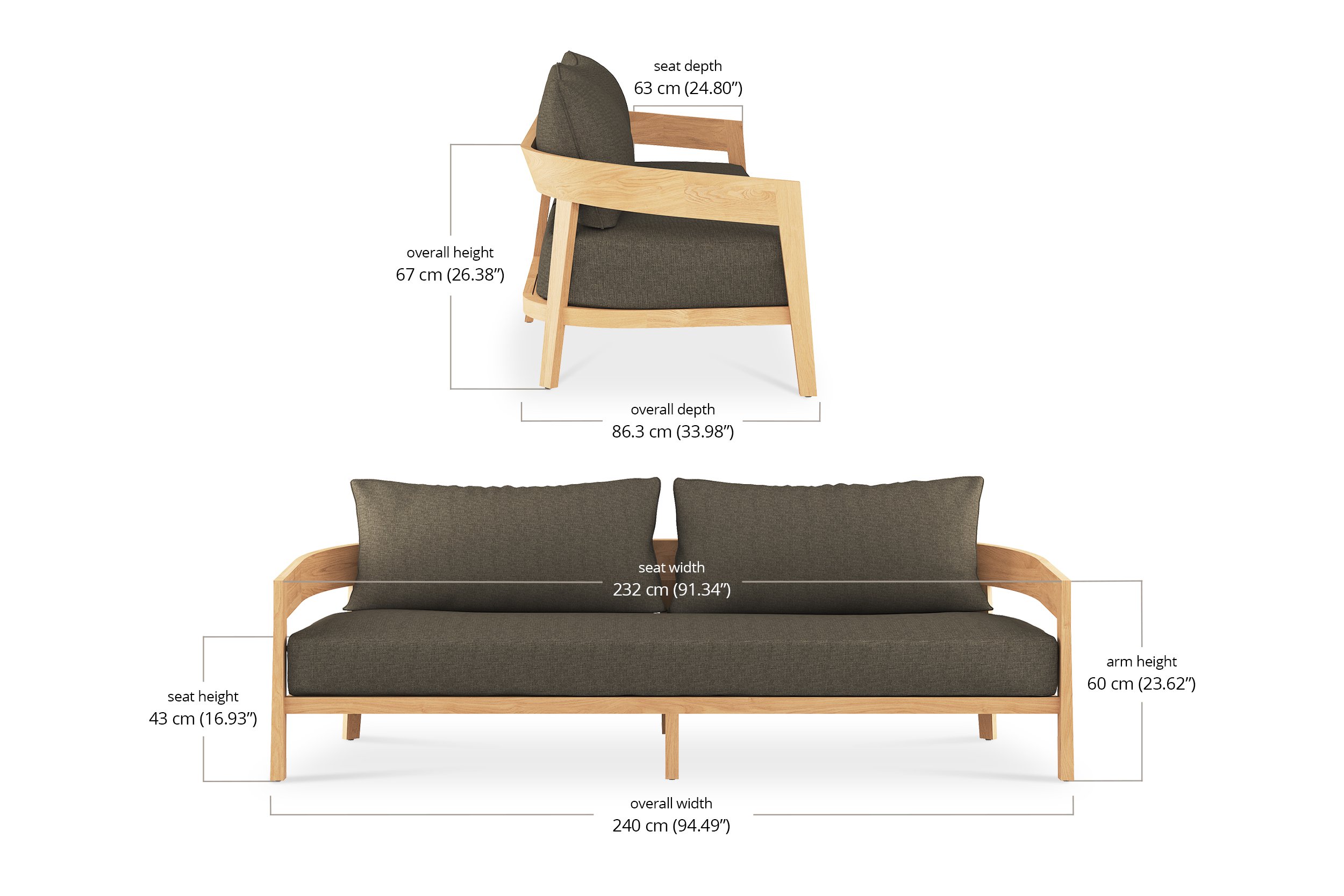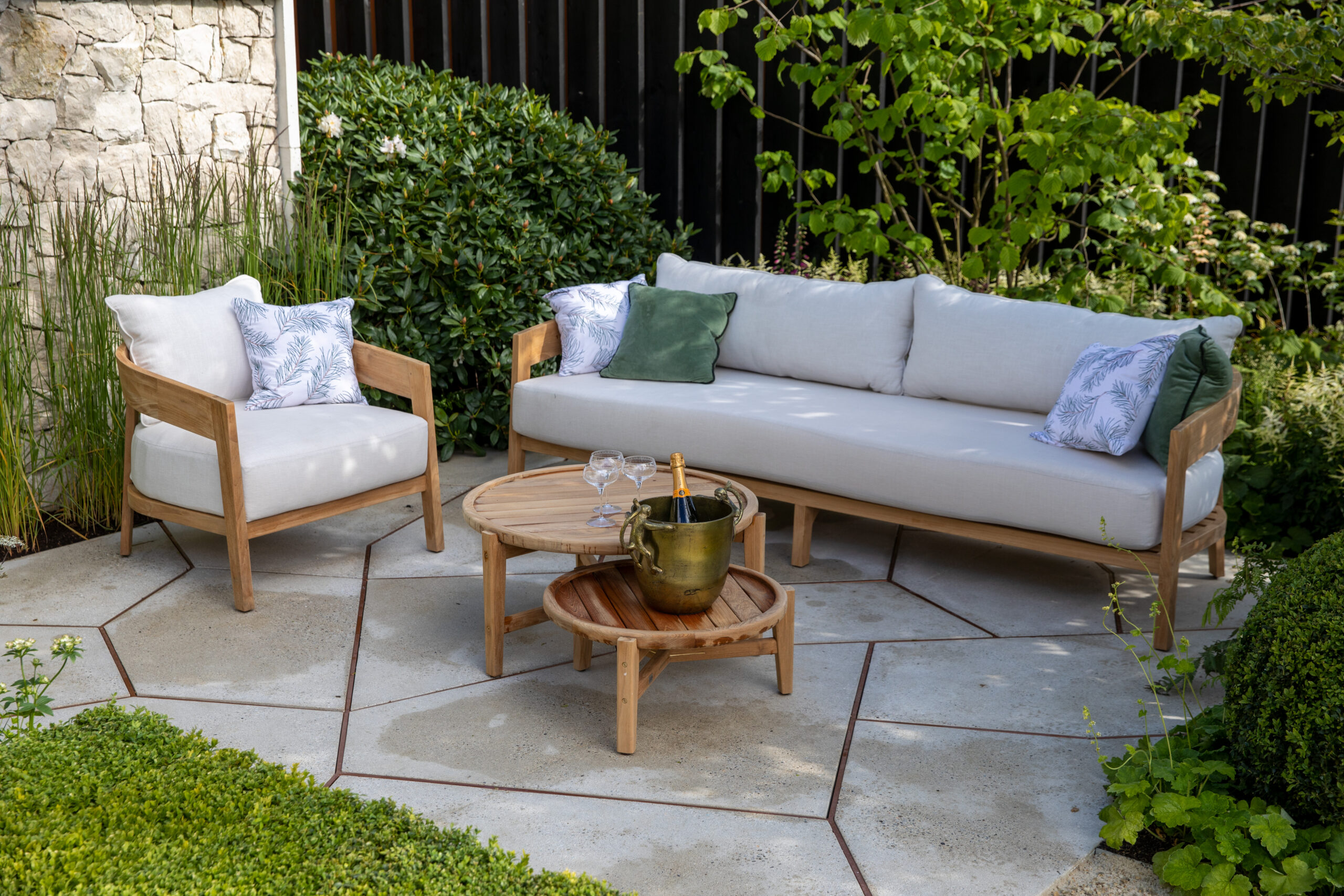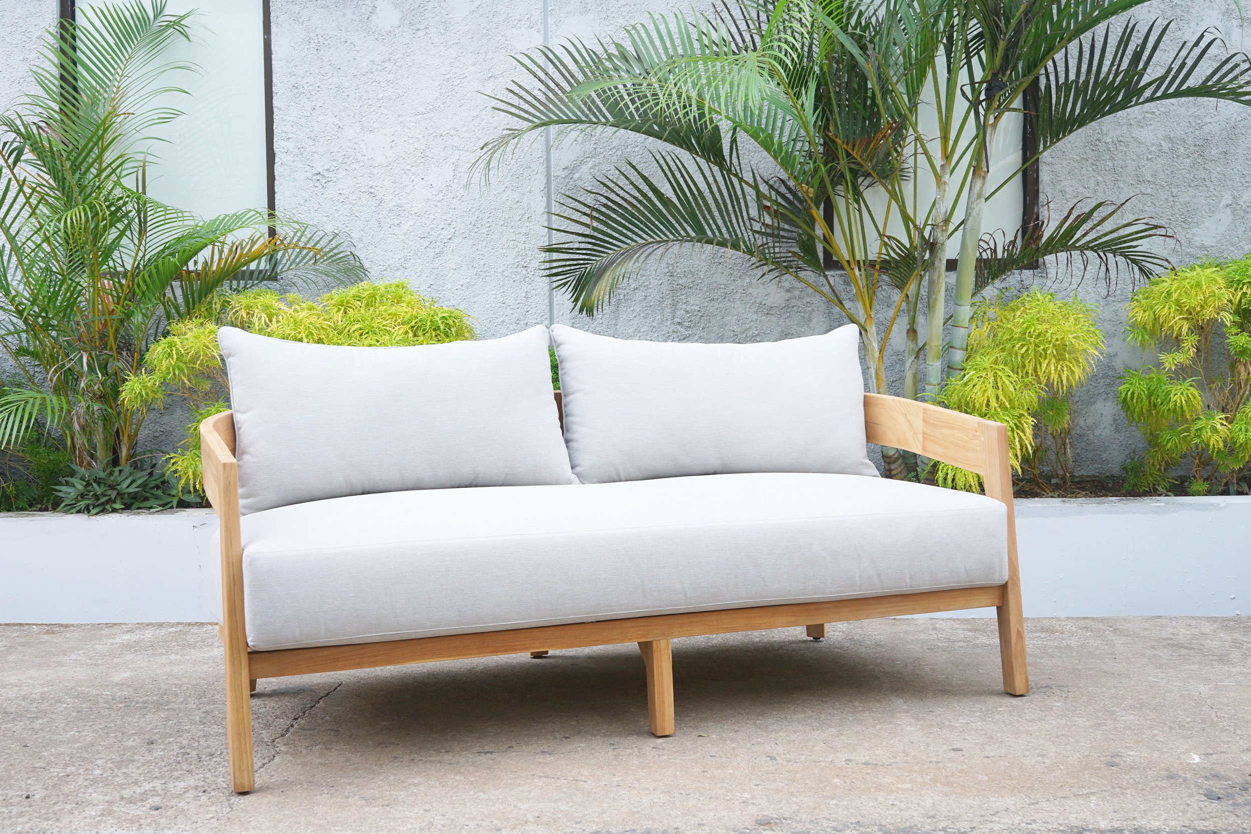 Meticulous craftsmanship of premium teak, weatherproof, modern, and refined. The Dunmore teak sofa set designed to dialogue between harmony, shape, and space. The gentle curve adds a graceful touch to the construction. The generous dimensions make this sofa set ideal for outdoor living with your loved ones or taking the time to relax with your drink of choice. There is a matching dining set too should you wish .