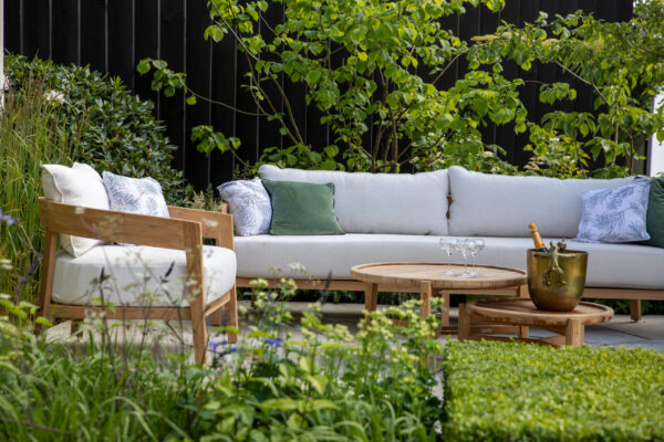 Meticulous craftsmanship of premium teak, weatherproof, modern, and refined. The Dunmore teak sofa set designed to dialogue between harmony, shape, and spac