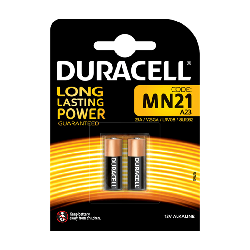Pack of 2 Duracell specialty alkaline MN21 batteries. Suitable for use in wireless remote controls, wireless doorbells and security systems (alarms).