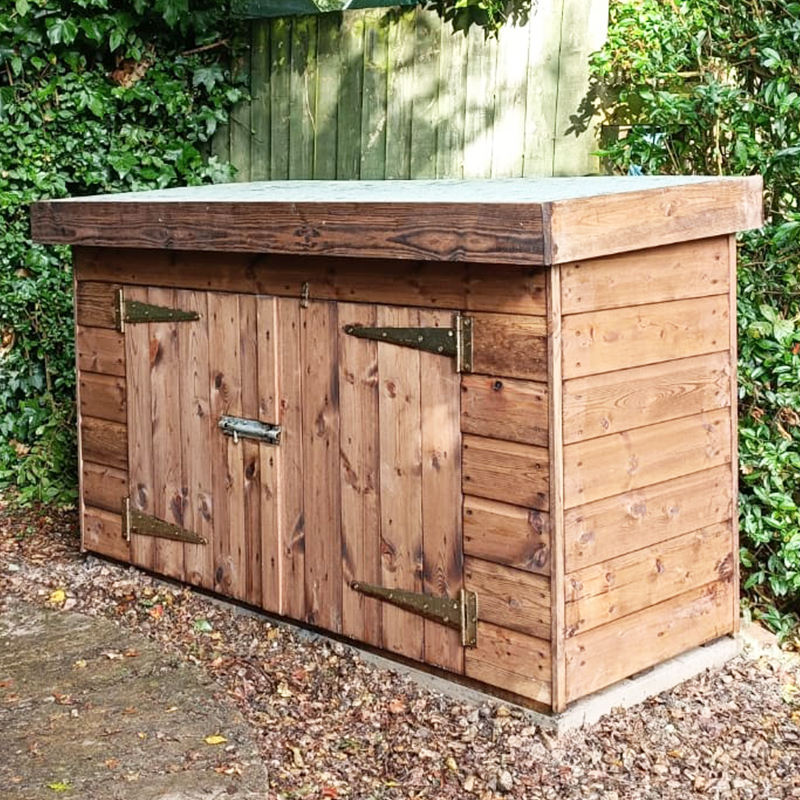 A premium quality low level tool store to keep your tools and other garden items secure and protected from the elements. Manufactured by us using the same high quality materials we use for our sheds and has a pent (sloping) roof to allow any water to run off the roof. Manufactured in our on-site timber workshop.