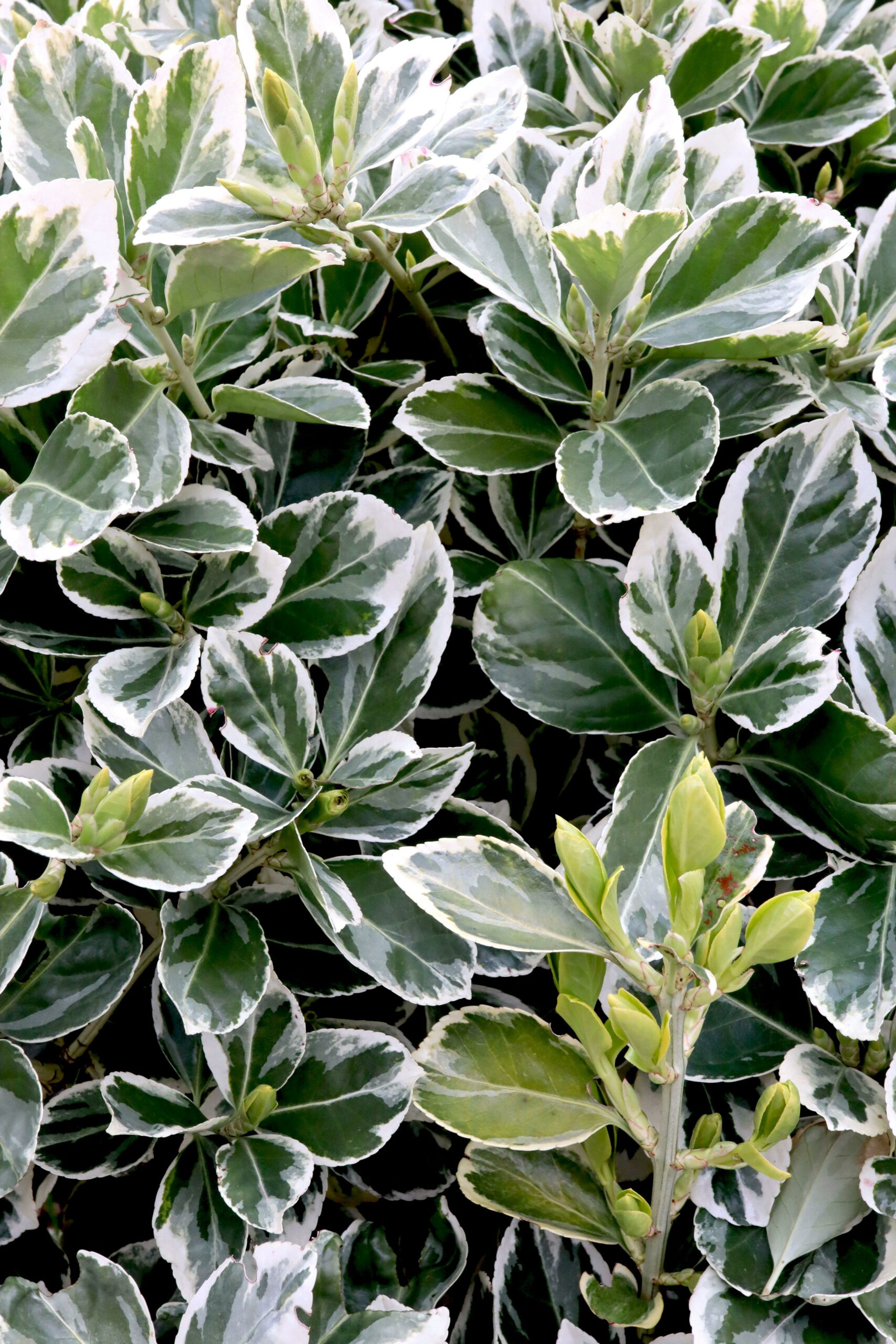 Dense, bushy, rounded shrub with evergreen foliage which is medium green margined with cream white. Small, pale green flowers are produced in late spring, f