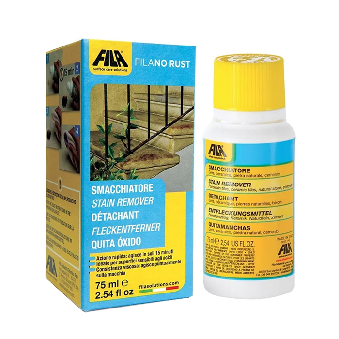 Fila – Norust removes surface rust stains, and thanks to its non-acidic formulation, it is particularly suited for delicate applications like polished marble.