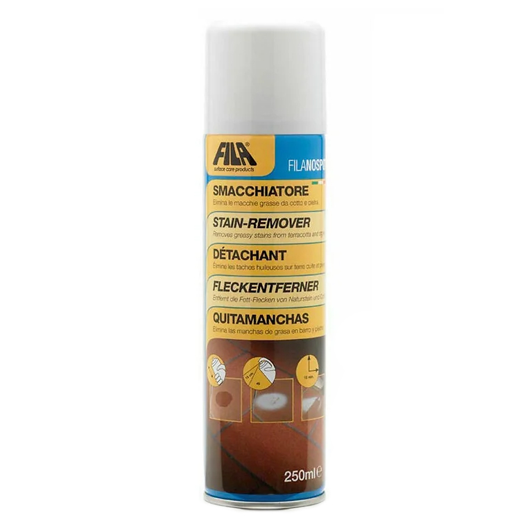 Fila – Nospot removes greasy and oily stains from terracotta, quarry tiles, natural stone, granite, agglomerates, tumbled marble, stones or cobblestones and concrete.