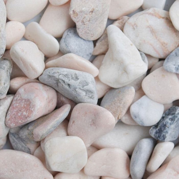 Flamingo Pebbles 20-50mm are a tumbled stone that is a mix of creams, pinks and light grey, all of which contain a natural sparkle.