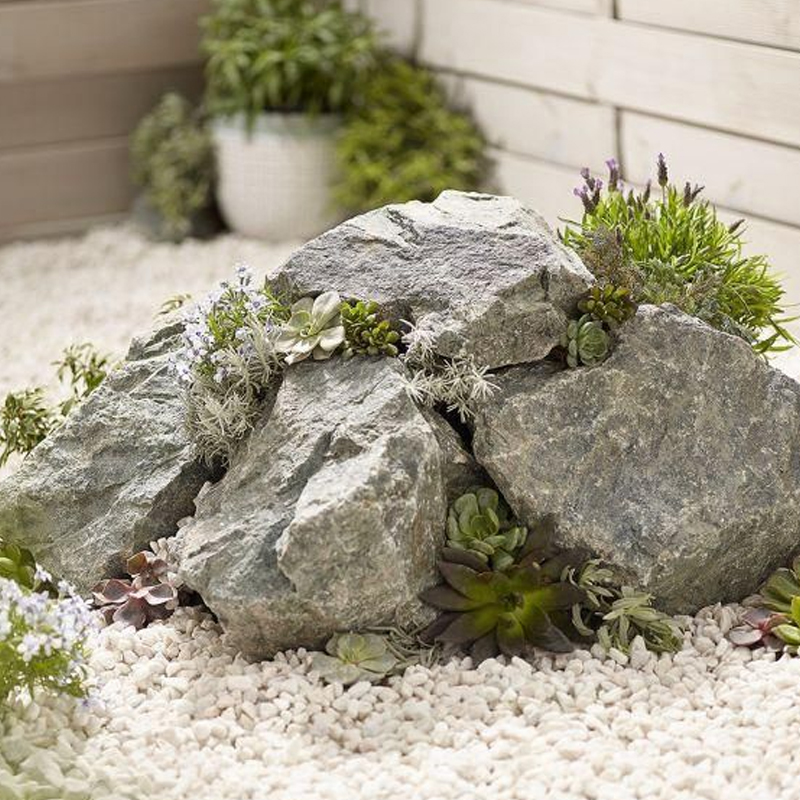 Forest Green Rockery Stone. Natural pieces of green granite that looks lovely when wet and will add the extra wow to your pond, water feature or rill, it will contrast and compliment the other aggregates used and planting to produce a very pleasing display. Works well in rock, seaside and Mediterranean gardens to provide contrast to planting and give structure. Can be placed randomly in a border to provide a backdrop to planting and add interest.
