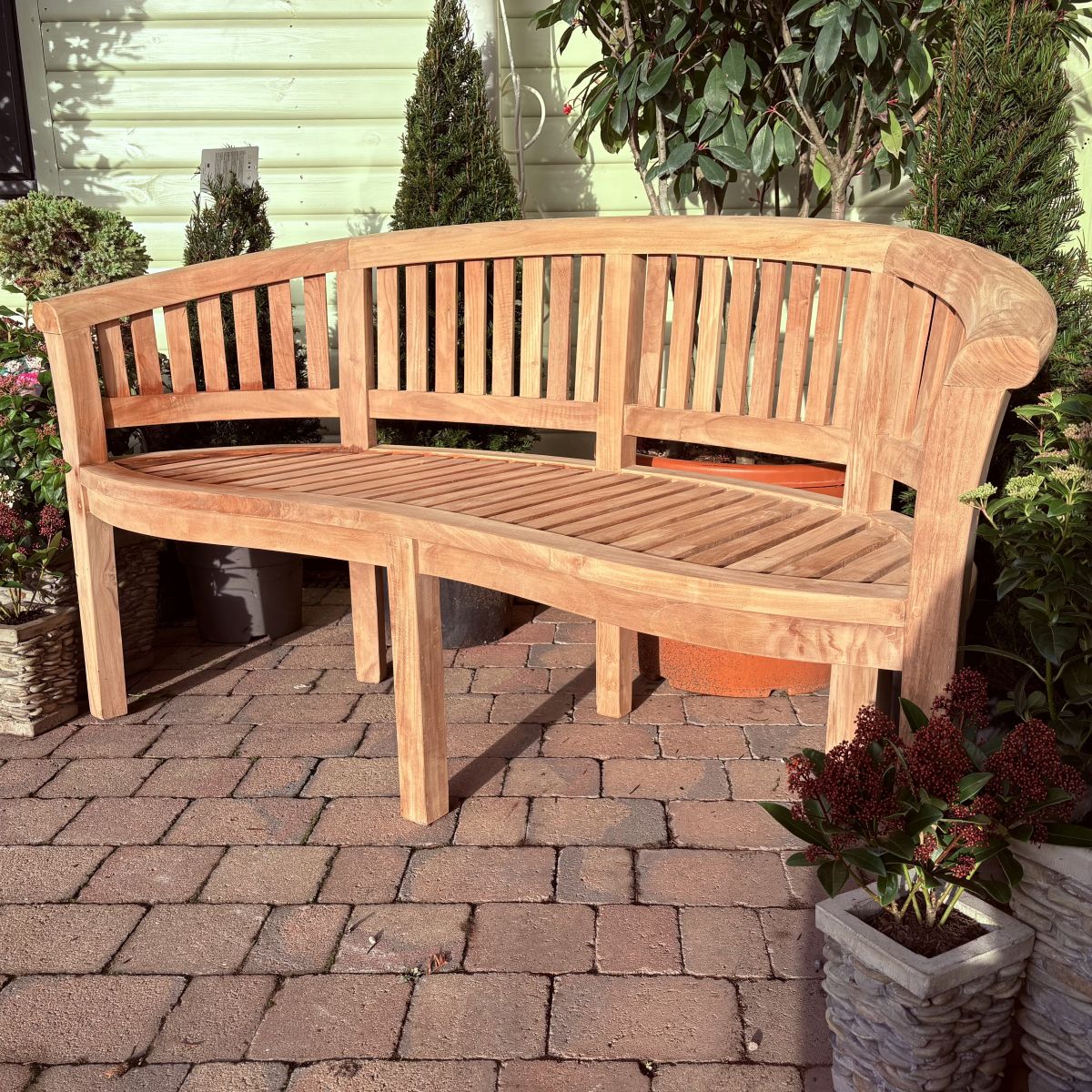 A contemporary take on the ‘banana bench’ concept, the Garden Trading – Crummock Teak Bench 3 Seater features a curved all-in-one back that’s been ergonomically designed to provide extra support & comfort.