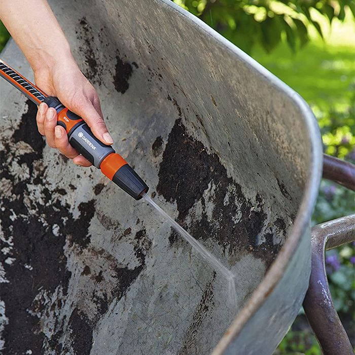 The Gardena Cleaning Nozzle is ideal for cleaning of intensive stains and watering with a fine mist. The nozzle sleeve cannot be removed and therefore not lost. It infinitely regulates the water spray patterns. You can choose the ideal pattern for your application. Thanks to the soft plastic element, the nozzle also lies well in the hand and does not slip.