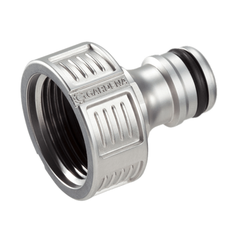 The Gardena Premium Tap Connector in a high-quality metal design enables a garden hose to be connected securely to a tap. Handling is easy and convenient thanks to the tap connector’s special shape. It is of robust metal, making it especially durable.