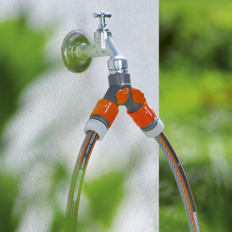 The Gardena Twin-Tap Connector gives you room for two hoses or devices on your tap. This allows you to perform different kinds of garden work at once.