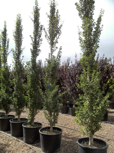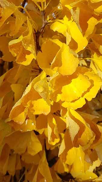 A very narrow  tree, Ginkgo biloba 'Fastigiata' has cool green leaves which turn a clear yellow in autumn before falling. This is often used in street plant
