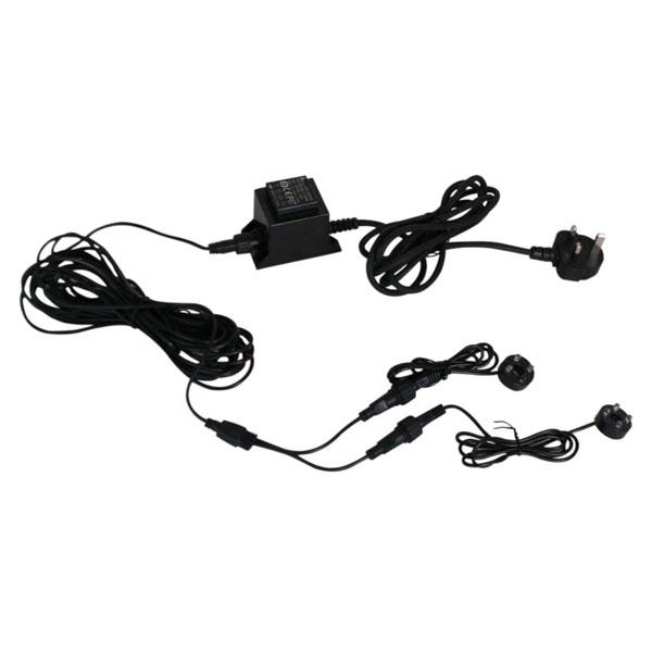 Easy installation with a total of 10m weatherproof cable throughout. Suitable for adding lighting or light replacement in self contained water features.