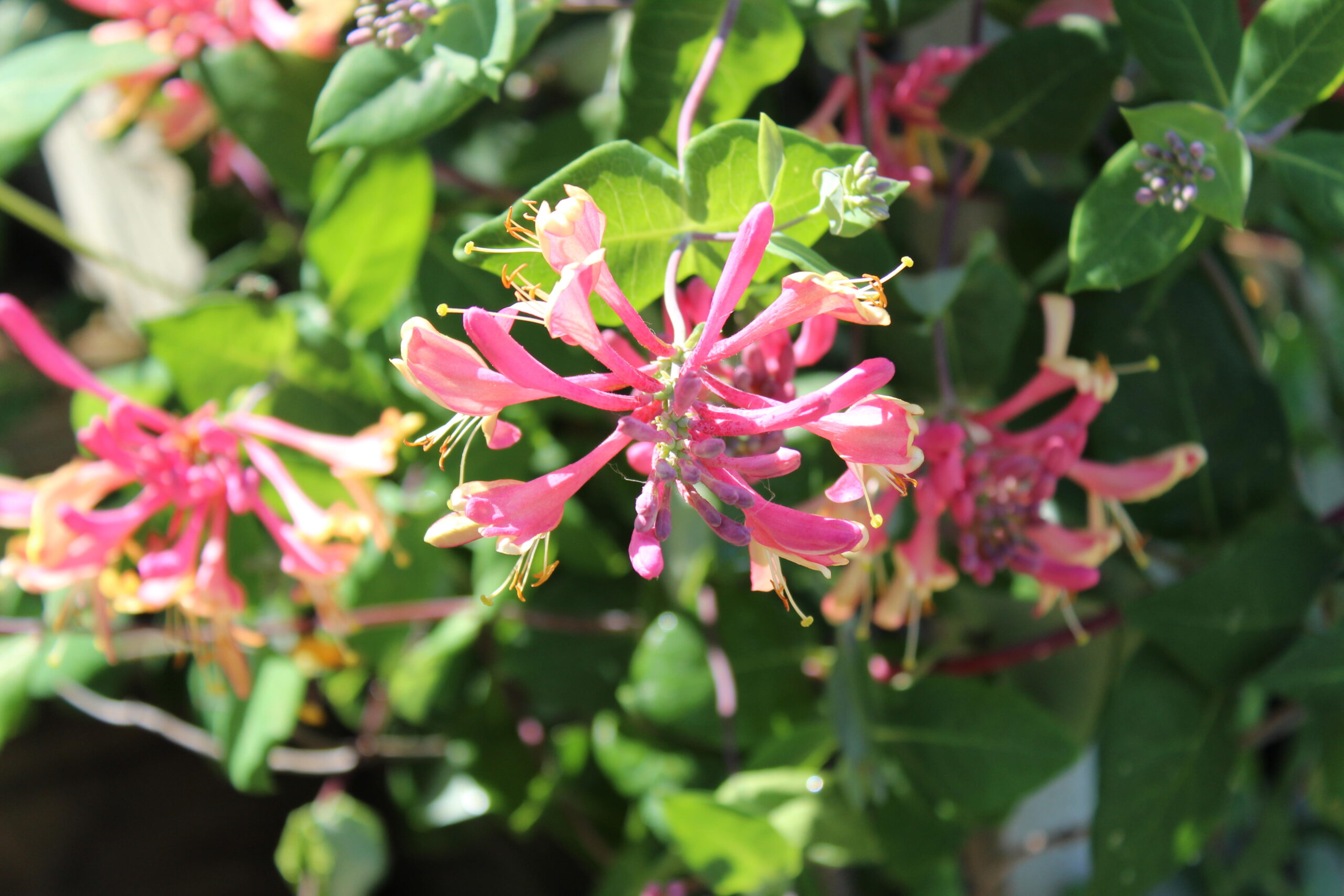 Lonicera × heckrottii 'American Beauty' is a vigorous, semi-evergreen honeysuckle climber admired for its fragrant, tubular flowers in shades of deep pink a