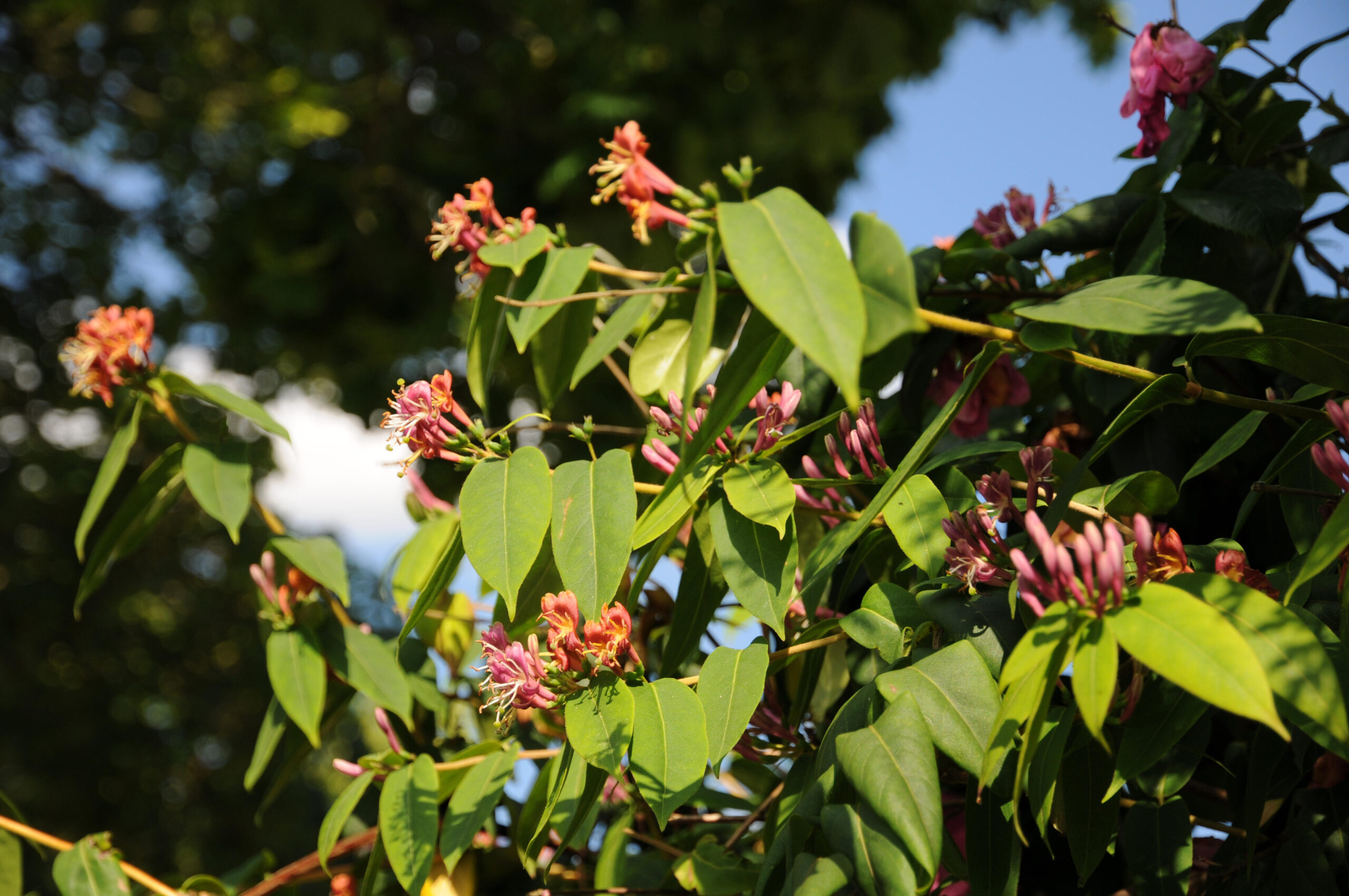 The new foliage of this (almost) evergreen, twining climber emerge a distinctive bronze colour, but gradually fade to green as they age. From early summer t