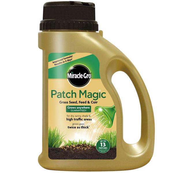 Miracle-Gro Patch Magic Shaker is the only patching mix that takes care of the seed for you, so you can grow thick, beautiful grass anywhere.