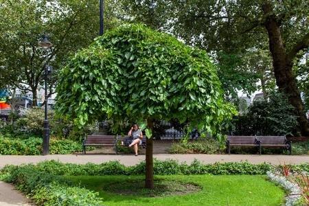 A small weeping tree with steeply falling branches. Large, heart-shaped leaves are glossy dark green, turning yellow in autumn. The small yellowish-green fl
