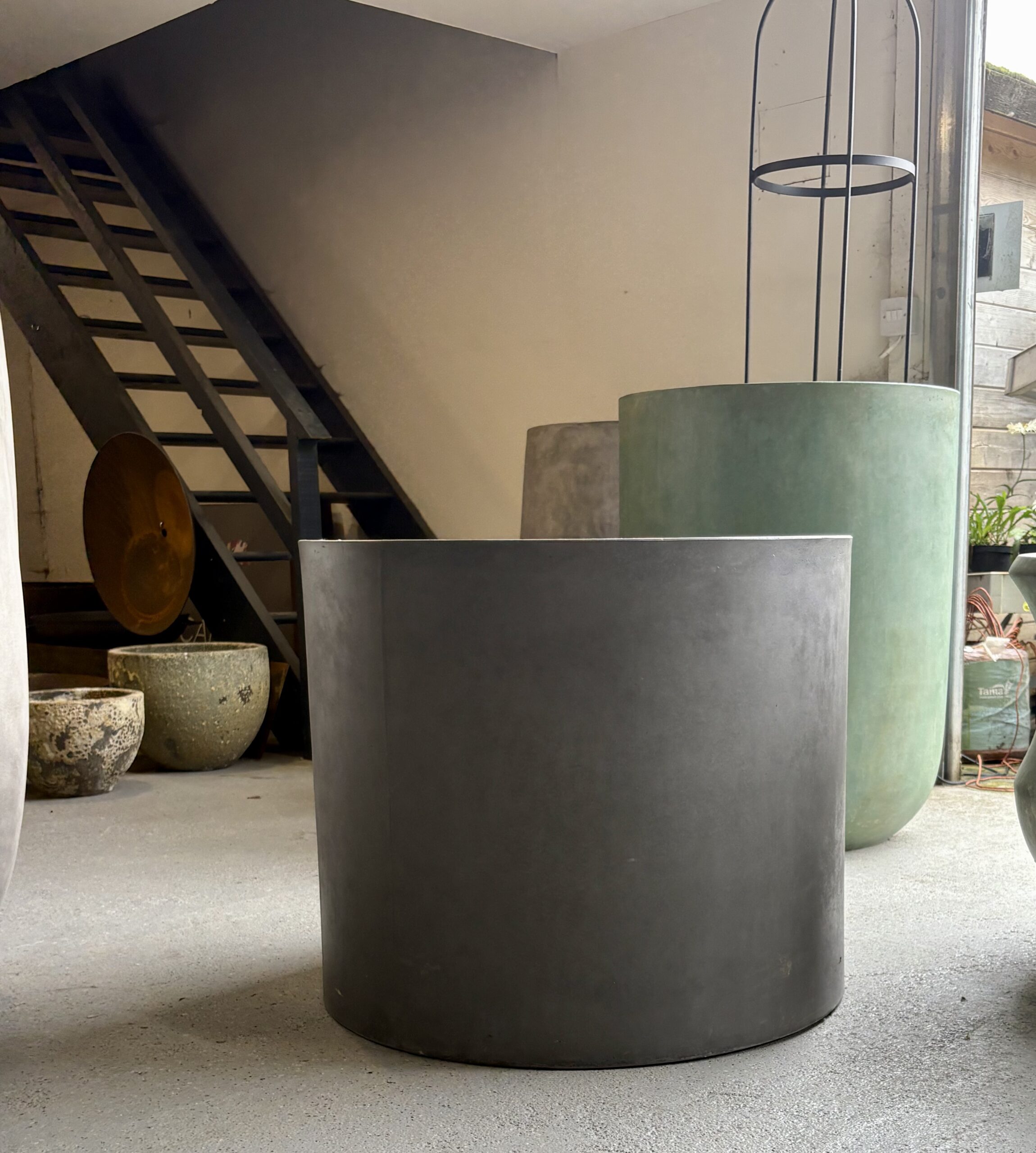 A lovely  contemporary round pot but is in a beautiful moodier charcoal colour a  little lighter than the stone grey made from  GFRC; glass fibre reinforced