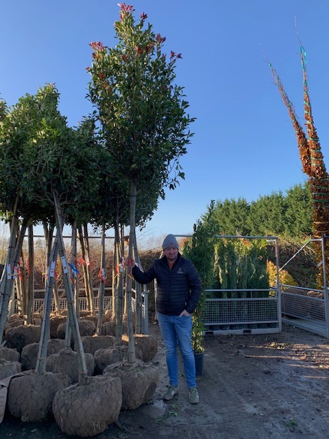 Like a living sculpture painted by nature's finest artist, our Photinia Red Robin standard tree stands as a beacon of year-round beauty in the Irish garden. Rising on an elegant 1.8-metre stem, this architectural marvel crowns itself with a perfectly rounded head of the most spectacular foliage display you'll witness through the seasons.