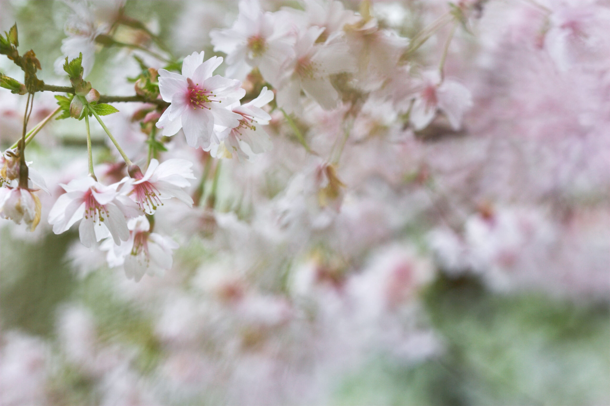 Prunus 'Mikinori' is a captivating flowering cherry, admired for its profusion of large, semi-double, soft pink blooms in mid-spring. The flowers are held in generous clusters along the branches, creating a cloud-like display that signals the arrival of spring. As the blossom appears, the tree is a beacon of gentle colour and elegance, making it a standout in any garden.