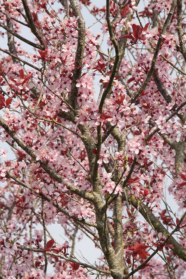 Prunus pissardi Nigra is a small, deciduous tree with an open habit. New leaf growth is bright, ruby-red maturing to deep plum. This is an ideal choice for