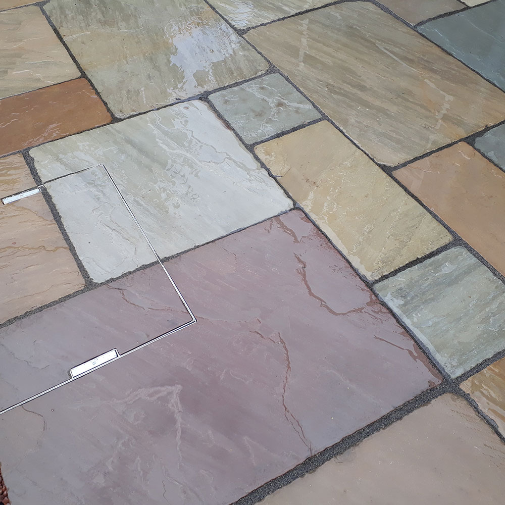 Laying natural stone paving requires compacted MOT to create a firm base and a mix of Concreting sand and Cement to create a full mortar bed to lay the paving on to. It is then also advised to apply a slurry primer to provide a secure bond between your paving slabs and the bedding mortar. Finally you will need a Jointing compound to fill the gaps between each piece and secure the slabs together, providing a professional finish.