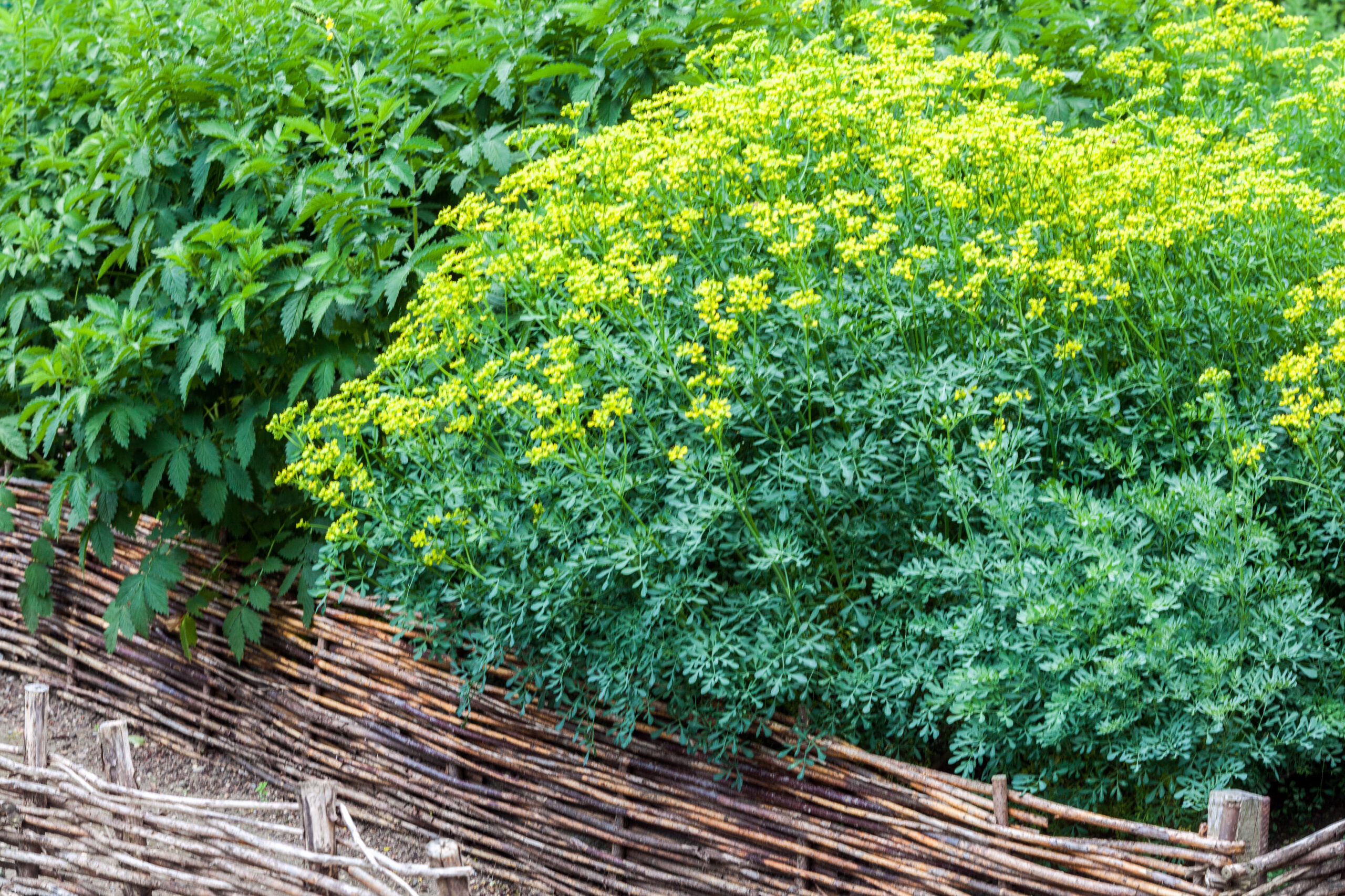 Ruta graveolens or 'rue' is a small perennial shrub of about 1 meter. Widely use as a culinary and medicinal herb either dried or fresh. With clusters of fo
