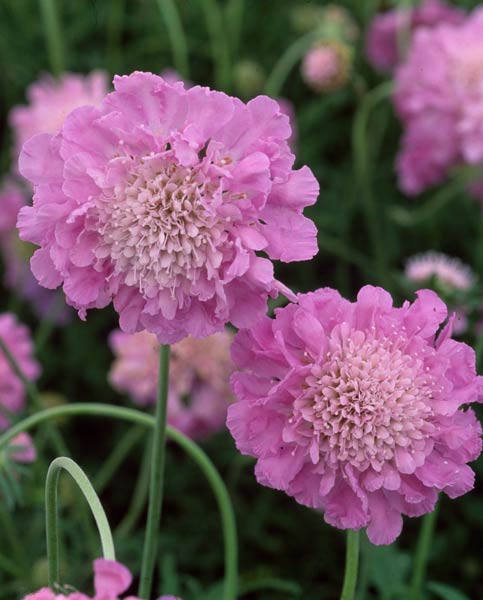 The sister to "Butterfly Blue", "Pink Mist" retains all the great attributes of a Scabiosa, but with soft pastel pink flowers. One of the longest floweri