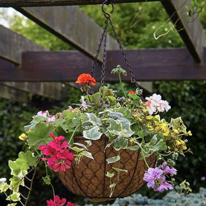 The Decorative hanging basket from Tom Chambers would add a stylish touch to your outdoor space. Intricate wire design with rustic coating. Complete with coco fibre liner.