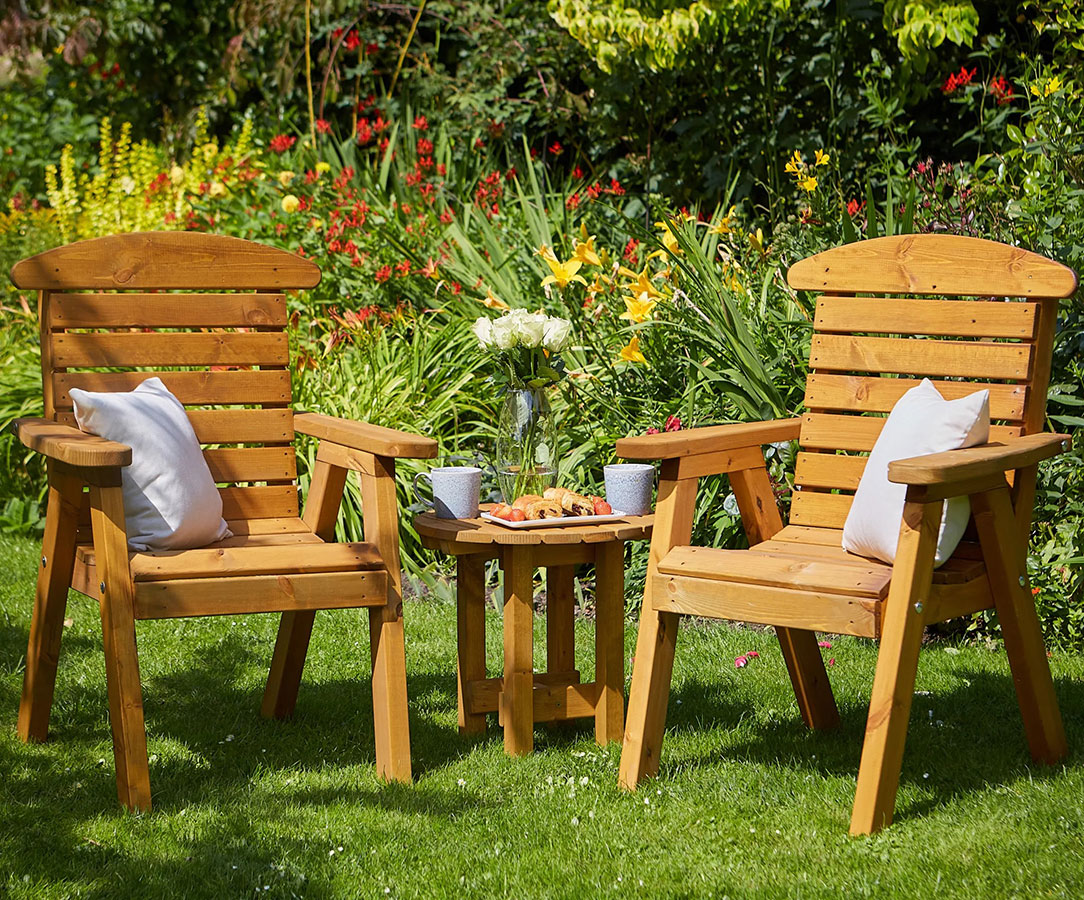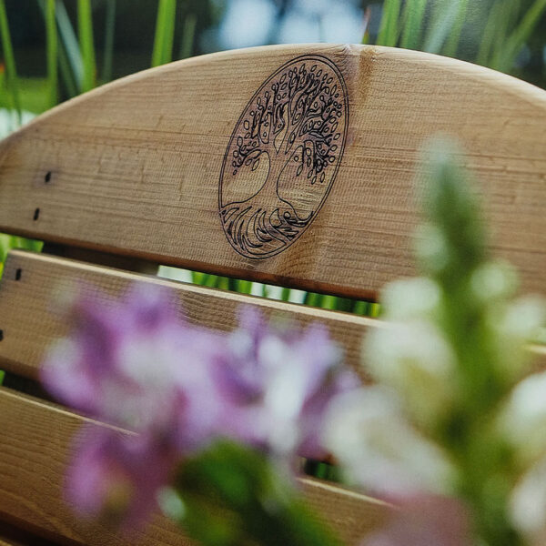 The Tom Chambers – Hetton Companion Set with Coffee Table has been expertly handcrafted from sustainably sourced timber and includes an etched tree design on each chair.