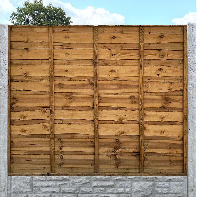 Standard Waney Edge are lapped from a single side, so they flow down from one side of the panel and up from the other. Click here to view Waney Edge Fence Panels